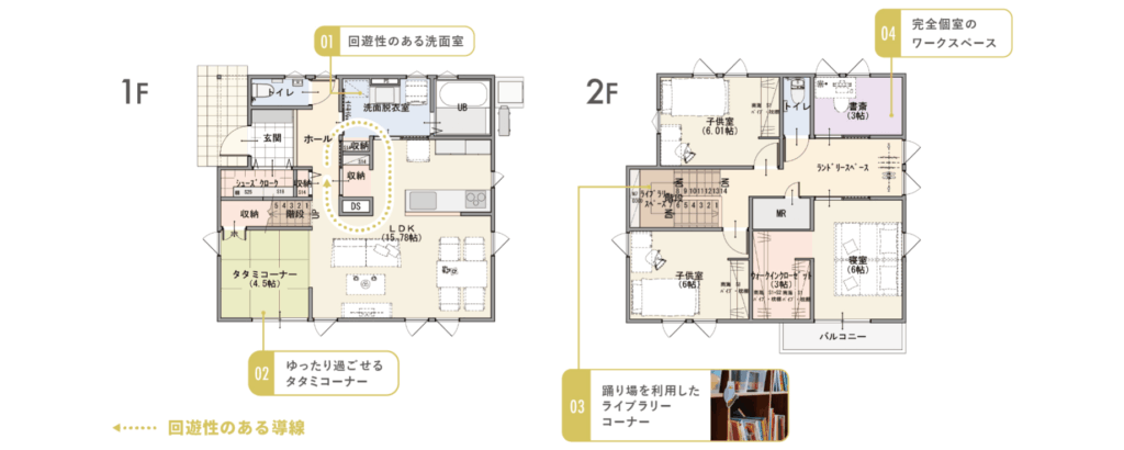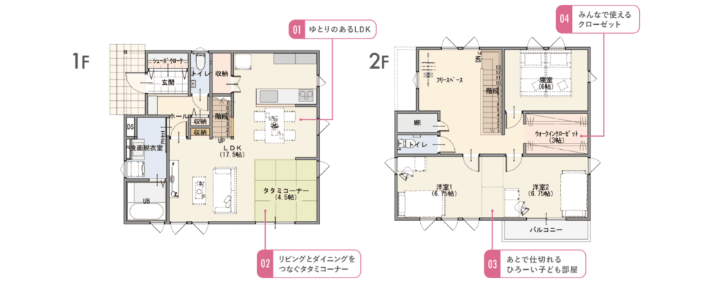 子どもがのびのびと遊べる住まい、家事を効率的におこなうことができる動線で子どもと過ごす時間を増やすための住まい。選べる外観と子育てに寄り添った間取りで住まいづくりも家族の楽しい思い出の一つに。