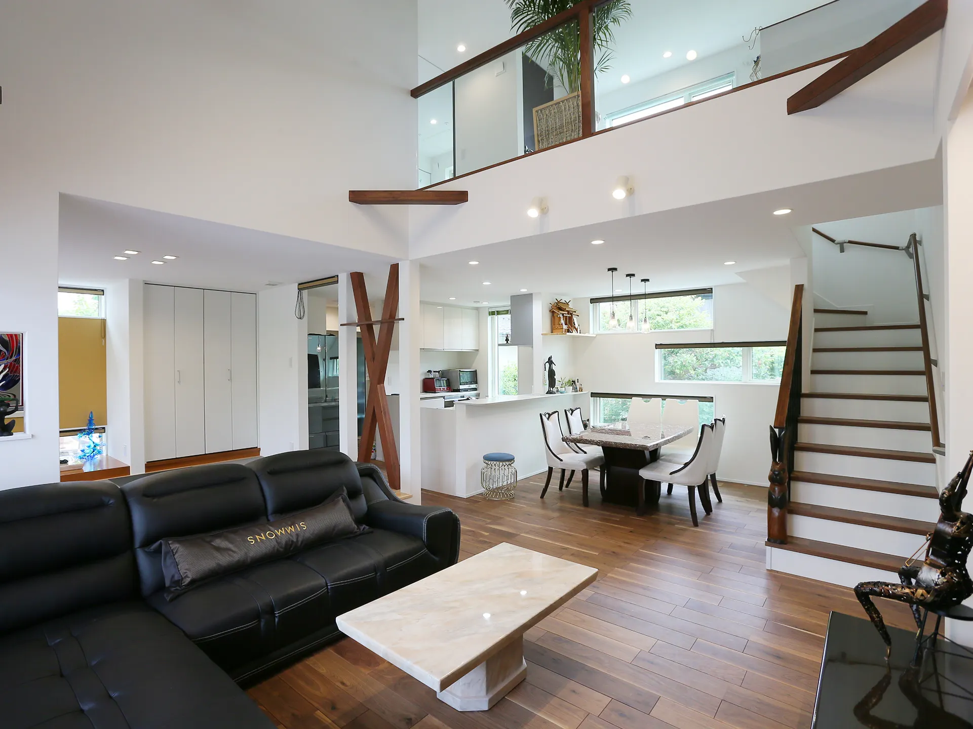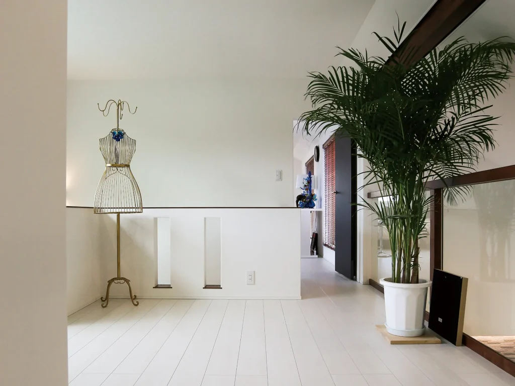 吹き抜けがあり広々と開放的な室内。