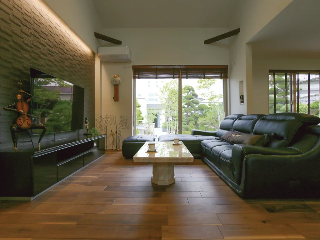 和風庭園を望むリビング