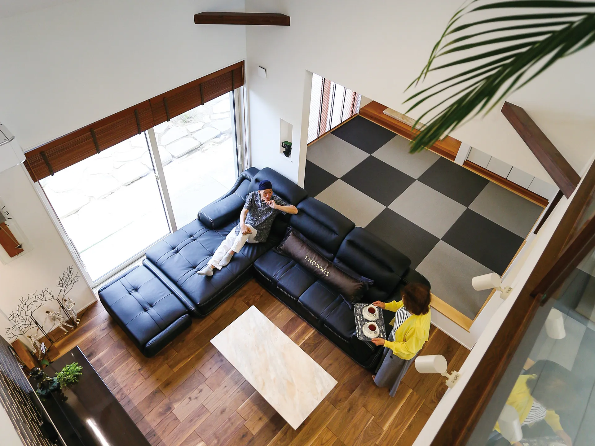 和室の畳は大きな市松模様とし モダンなテイストでリビングと調和。