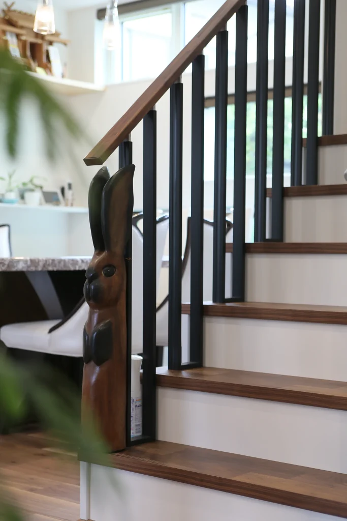 階段の親柱部分には可愛らしいウサギが部屋を覗く。
