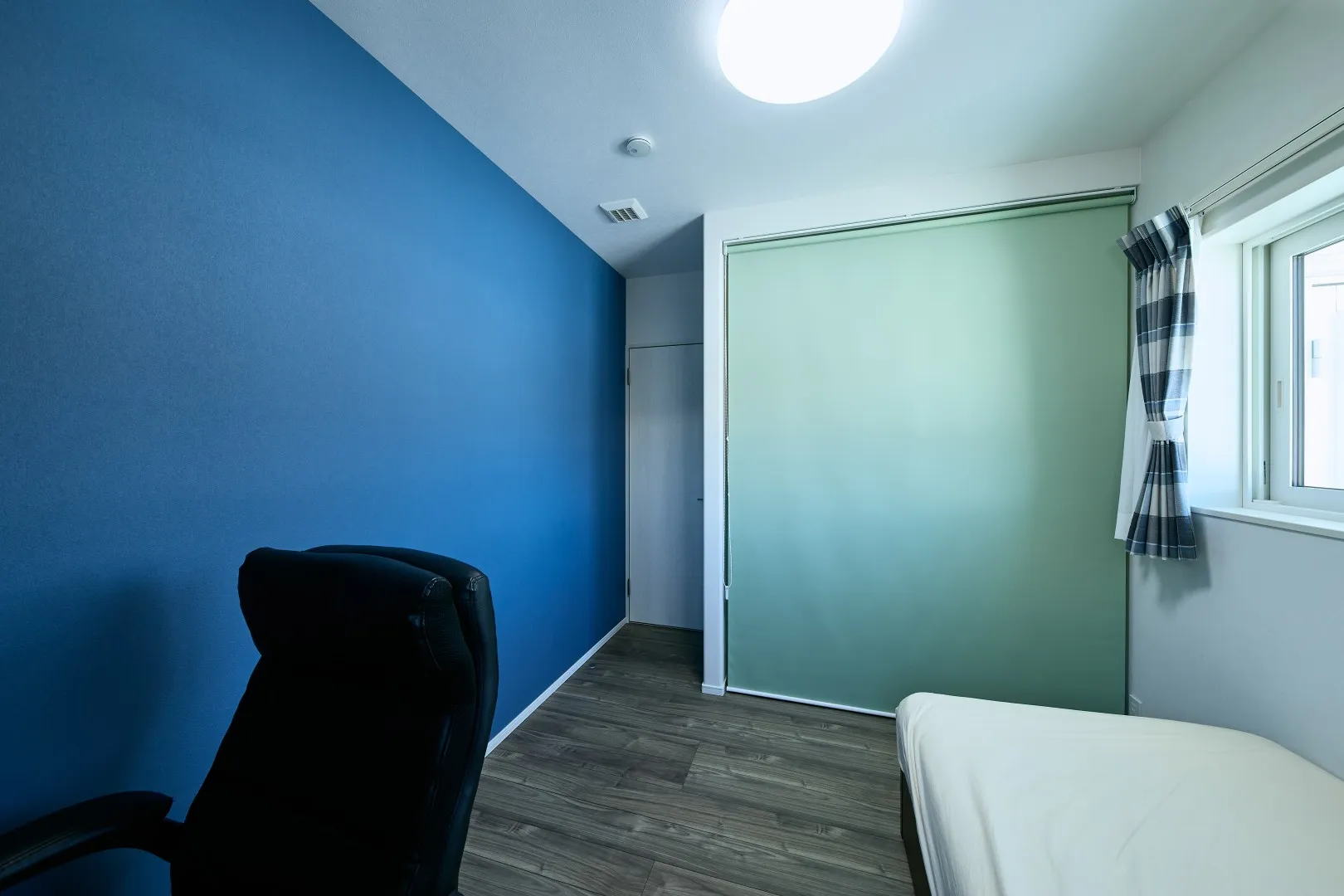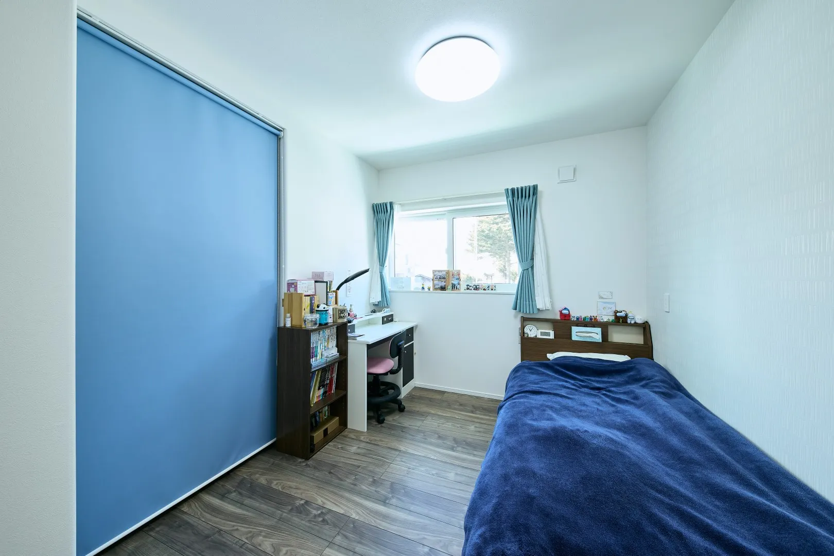 子ども部屋は娘さんが自分で選んだ爽やかなブルーのクロス