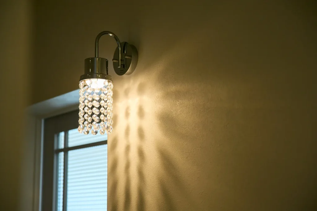 玄関に入ってすぐに目に留まる、可愛らしいミニシャンデリア。派手さやゴージャス感を程よくおさえ、壁に影が幻想的に反射し、玄関を明るく照らしてくれている。