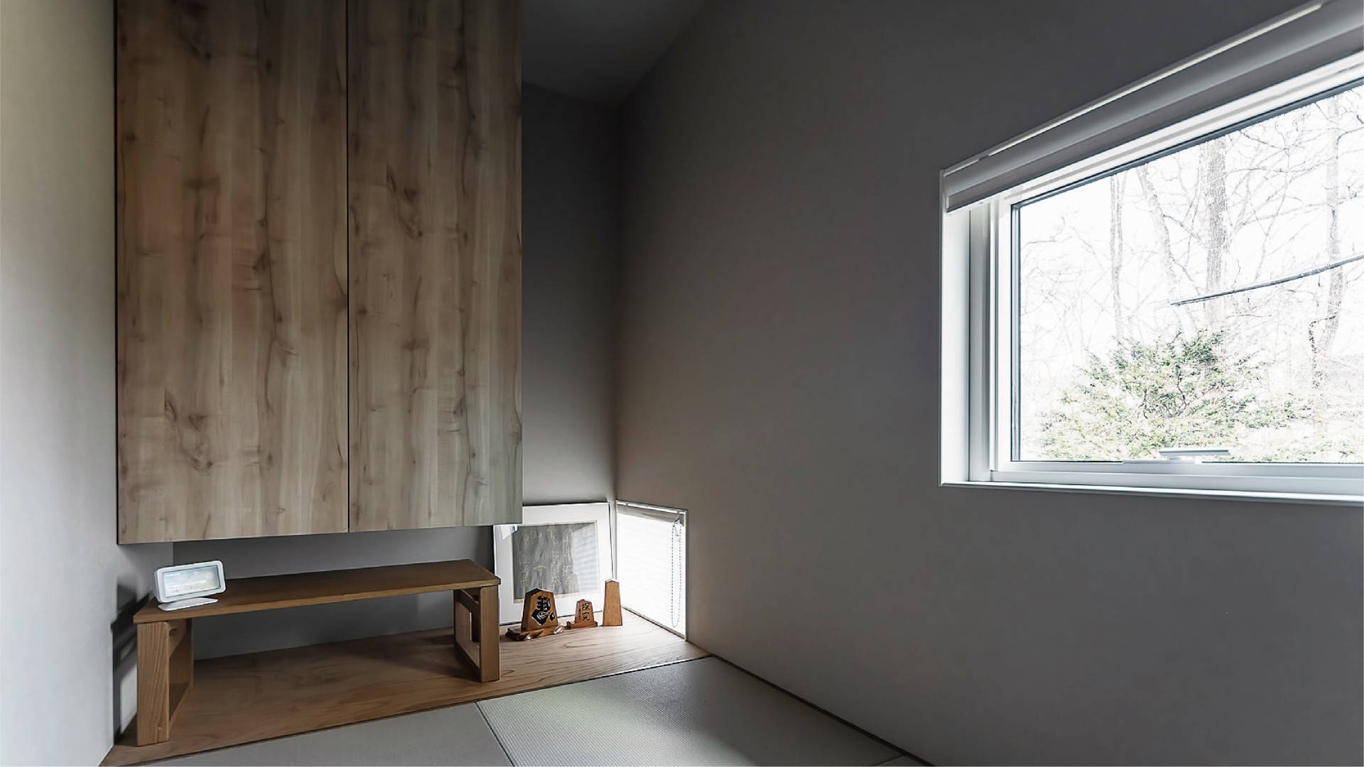 2階には3帖ほどの小さな和室も用意。子どもたちの“寝床”のひとつでもある。コロナ禍の間にプランニングしたこともあり、家族が感染症に罹患したときの隔離・看病部屋としても想定