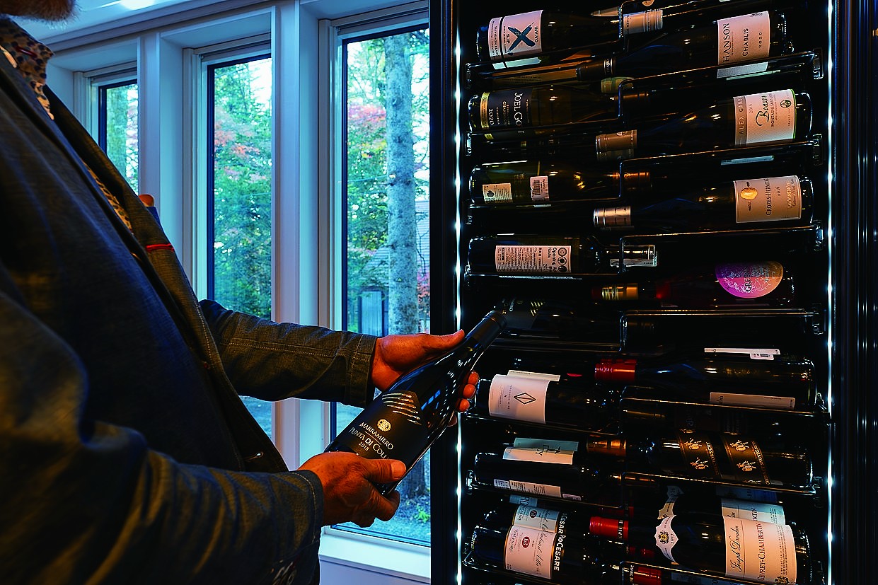 バンビーノのワインセラーには常時150本ほどのワインを置き、来客時にはその人の好みにあったワインを選定し、もてなすんだとか。