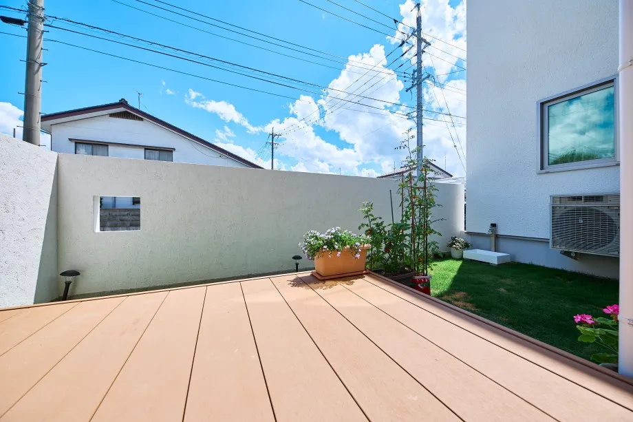 予定にはなかったが 飼っているワンちゃんが外に出て遊べるようにと計画した。ウッドデッキではたまの息抜きに日向ぼっこもできそうだ。
