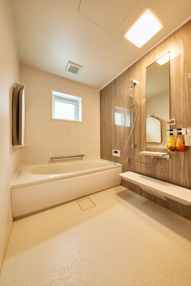 1階も2階と同様に浴室、脱衣室、ランドリールーム、洗面スペースをまとめた配置に。